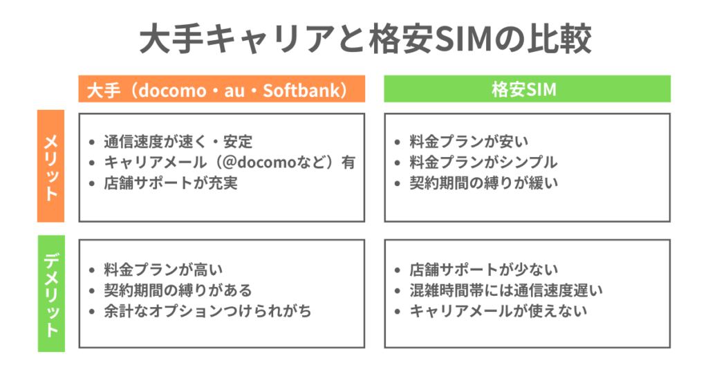 - 大手キャリアと格安SIMの違いを知りたい